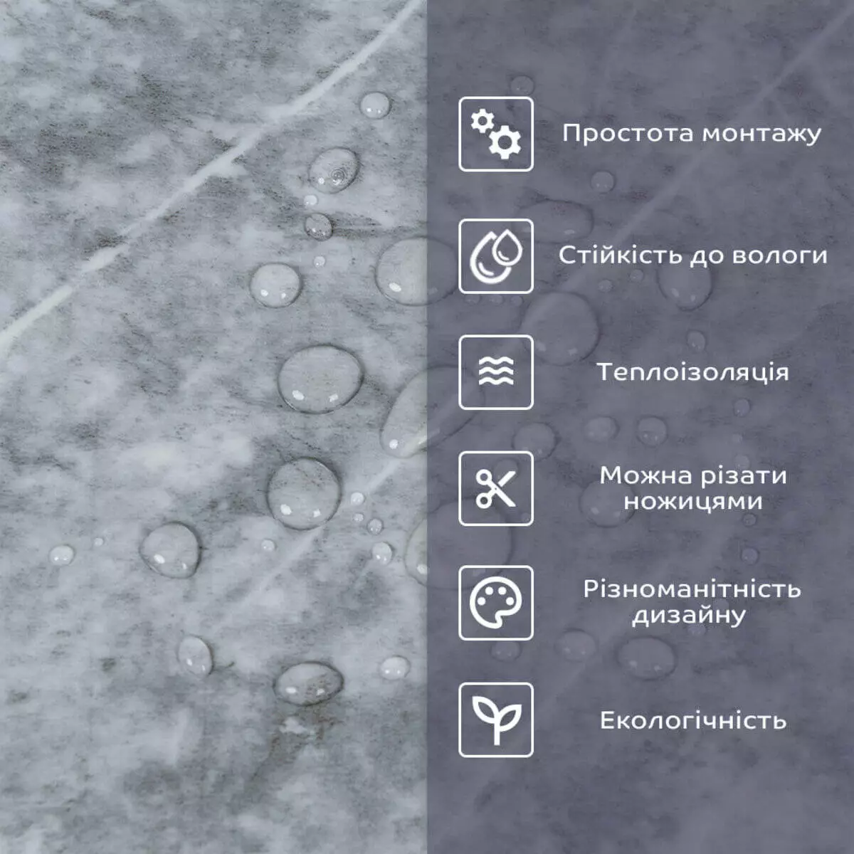 - 2. Стійкість до вологи: матеріал стійкий до впливу вологи та пари, а також до появи плісняви, що робить його придатним для використання у приміщеннях з високою вологістю, таких як ванни та кухні. Плитка підходить для створення фартуха кухні, можна клеїти біля плити на відстані не менше ніж 20-25 см;
