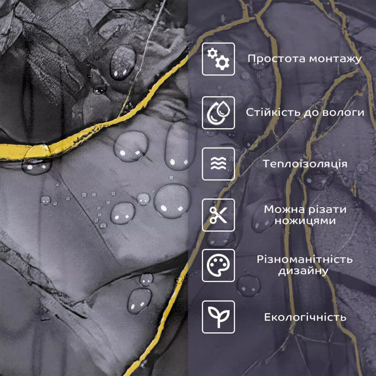 - 2. Стійкість до вологи: матеріал стійкий до впливу вологи та пари, а також до появи плісняви, що робить його придатним для використання у приміщеннях з високою вологістю, таких як ванни та кухні. Плитка підходить для створення фартуха кухні, можна клеїти біля плити на відстані не менше ніж 20-25 см;