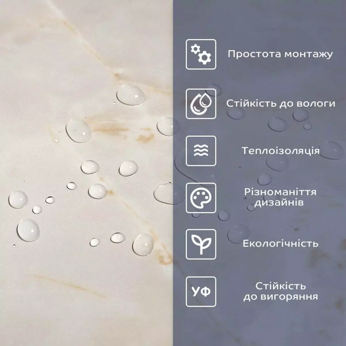 - Захисний силіконізований папір: оберігає клейовий шар від пересихання та забруднення, легко знімається під час монтажу.