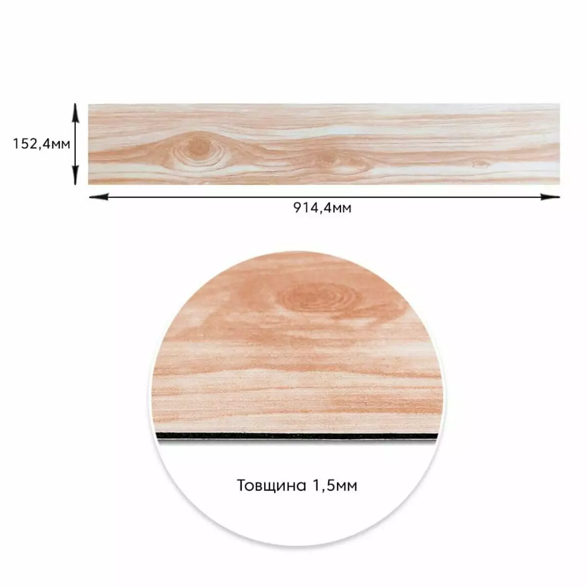 Площа покриття: 152 х 914 мм – 0,138 м², кількість на 1 м² – 8 одиниць