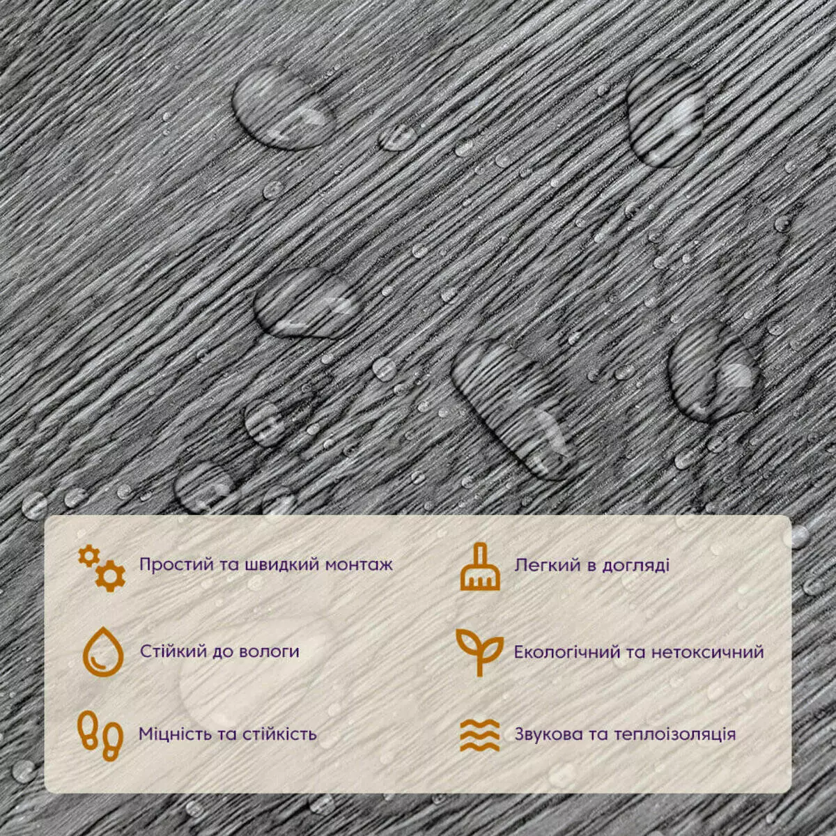• Стійкість до вологи: вінілова плитка під ламінат стійка до вологи, що робить її відмінним вибором для кухні та інших приміщень з підвищеною вологістю, матеріал стійкий також до впливу пари та до появи плісняви.