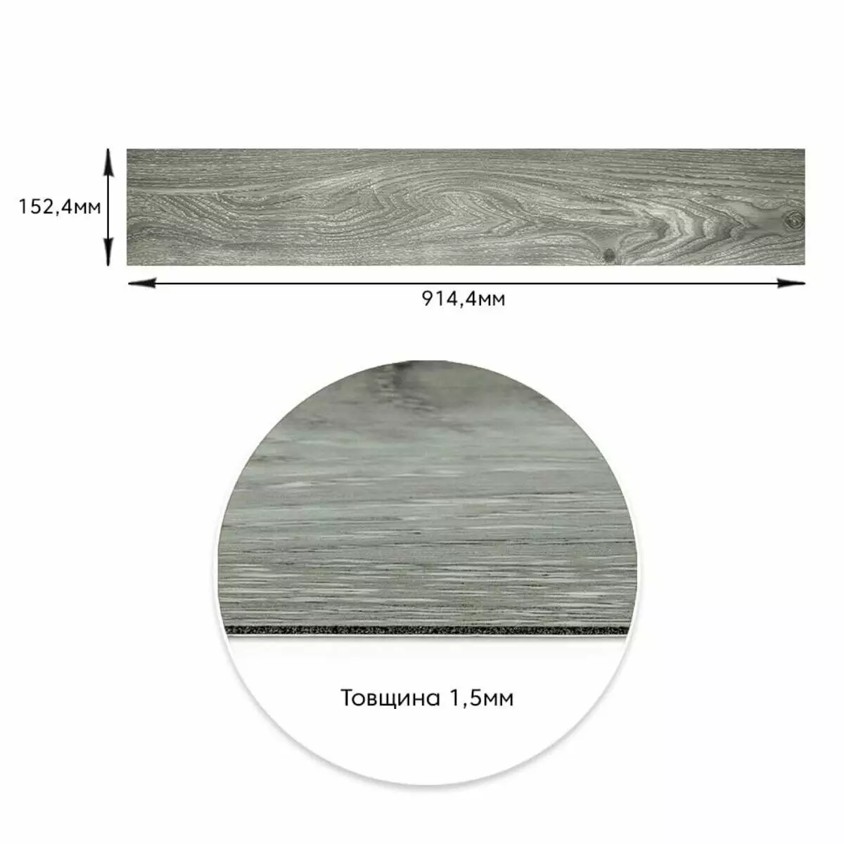 Площа покриття: 152 х 914 мм – 0,138 м², кількість на 1 м² – 8 одиниць