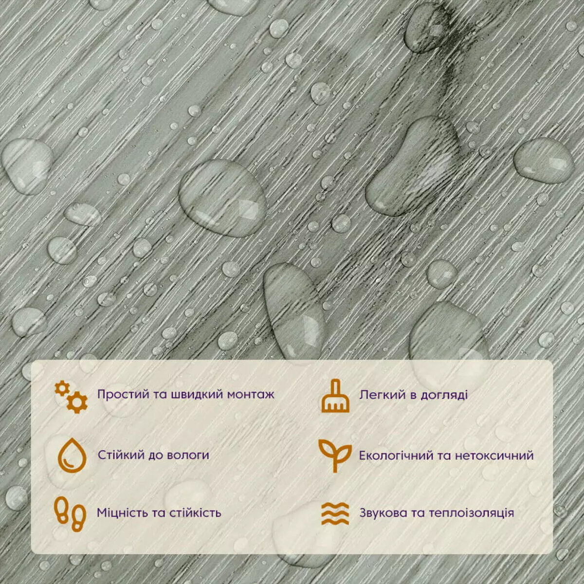• Екологічна безпека: вінілова плитка під ламінат не містить токсичних речовин і виготовляється з відновлювальних ресурсів, що робить її безпечною для здоров'я та довкілля.