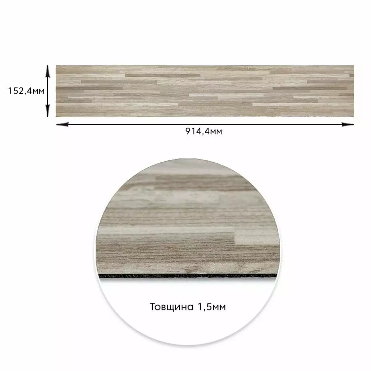 Самоклеюча вінілова плитка 152.4х914.4х1.5мм Сіро-бежева, ціна за 1 шт. (СВП-008) Матова SW-00000286