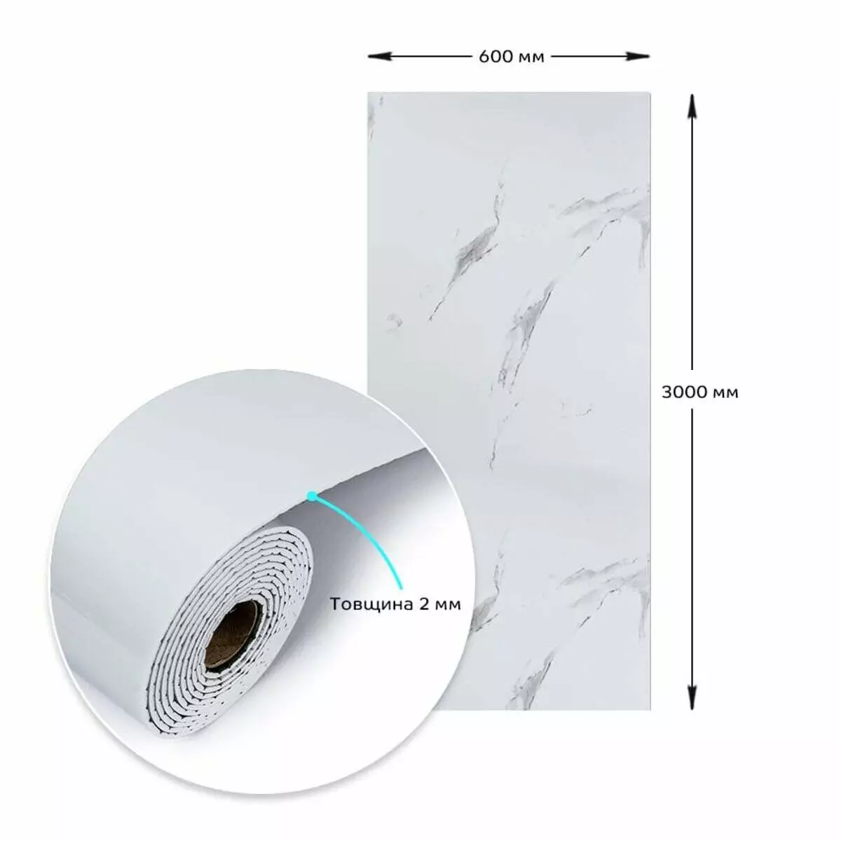 Самоклеюча вінілова плитка в рулоні 600х3000х2мм Білий повітряний мармур Глянсова SW-00001287
