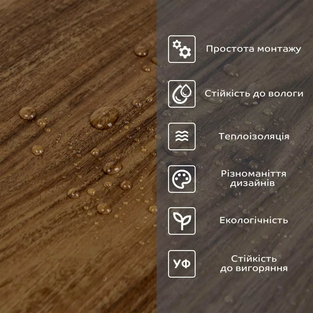 Фактура: рівна, з імітацією натуральних матеріалів. Поверхня глянсова або матова.