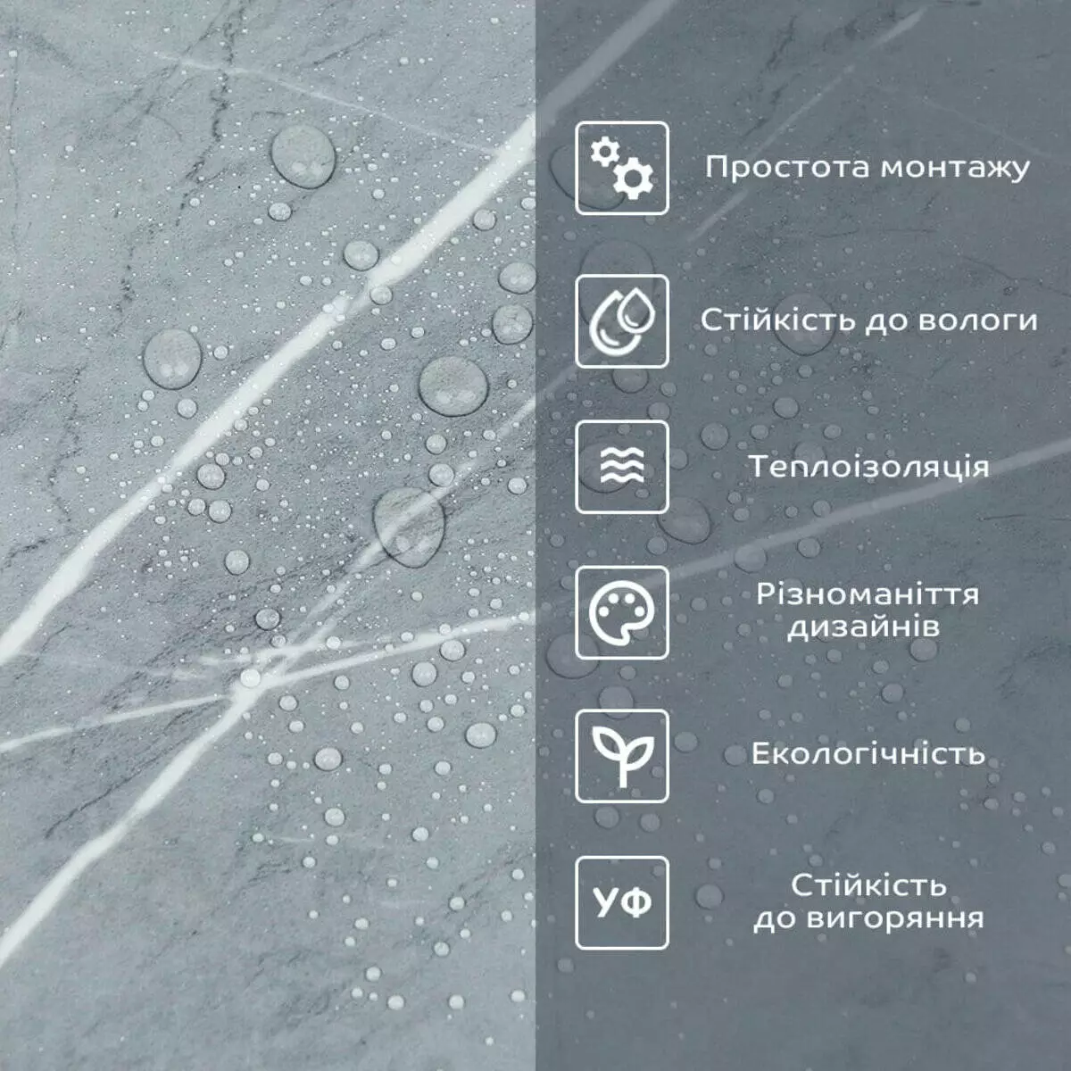 Фактура: рівна, з імітацією натуральних матеріалів. Поверхня глянсова або матова.