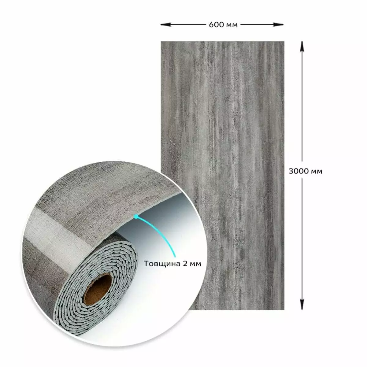 Розміри: 600 х 3000 х 2 мм