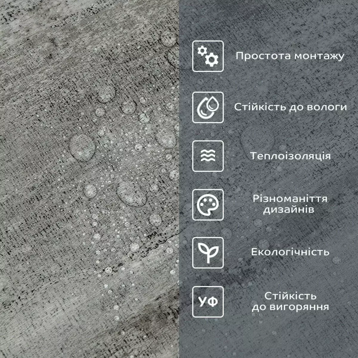 Фактура: рівна, з імітацією натуральних матеріалів. Поверхня глянсова або матова.