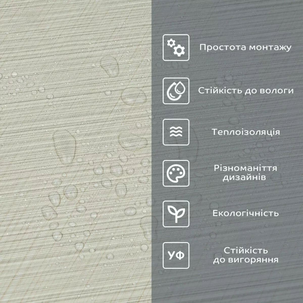 Фактура: рівна, з імітацією натуральних матеріалів. Поверхня глянсова або матова.