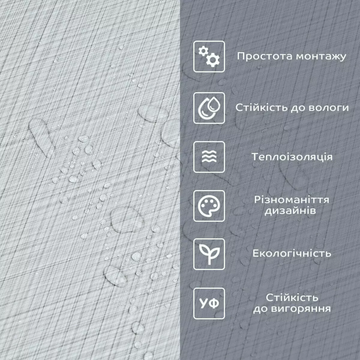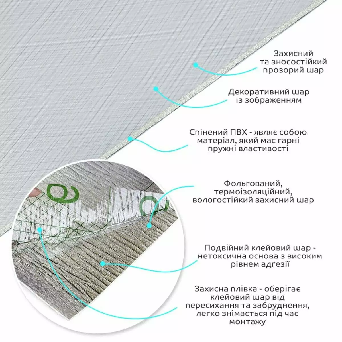Фактура: рівна, з імітацією натуральних матеріалів. Поверхня глянсова або матова.
