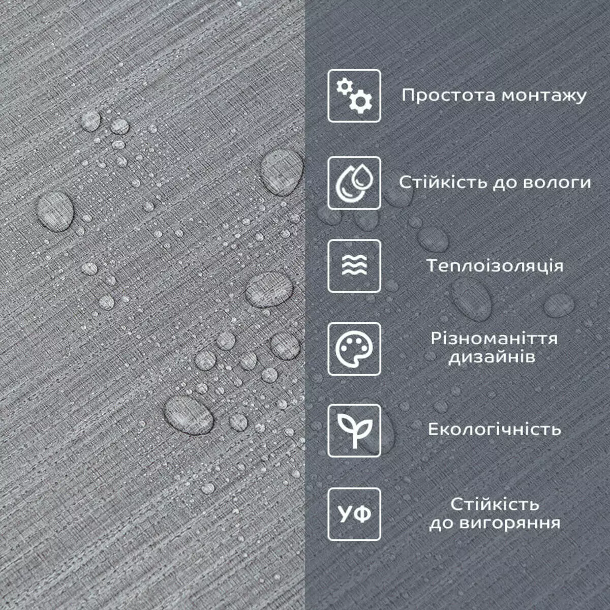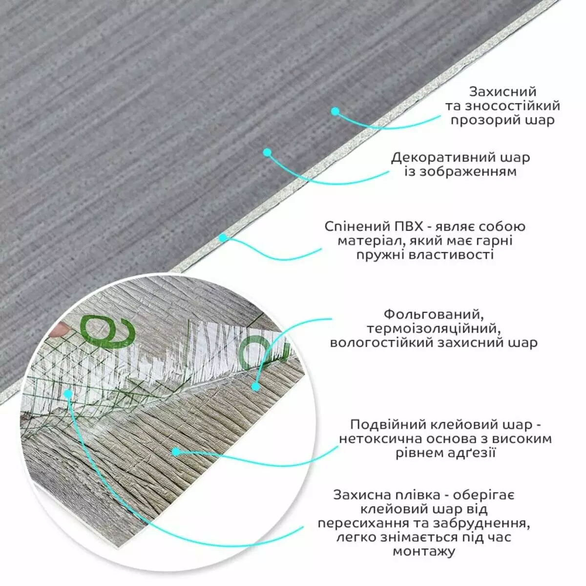 Фактура: рівна, з імітацією натуральних матеріалів. Поверхня глянсова або матова.
