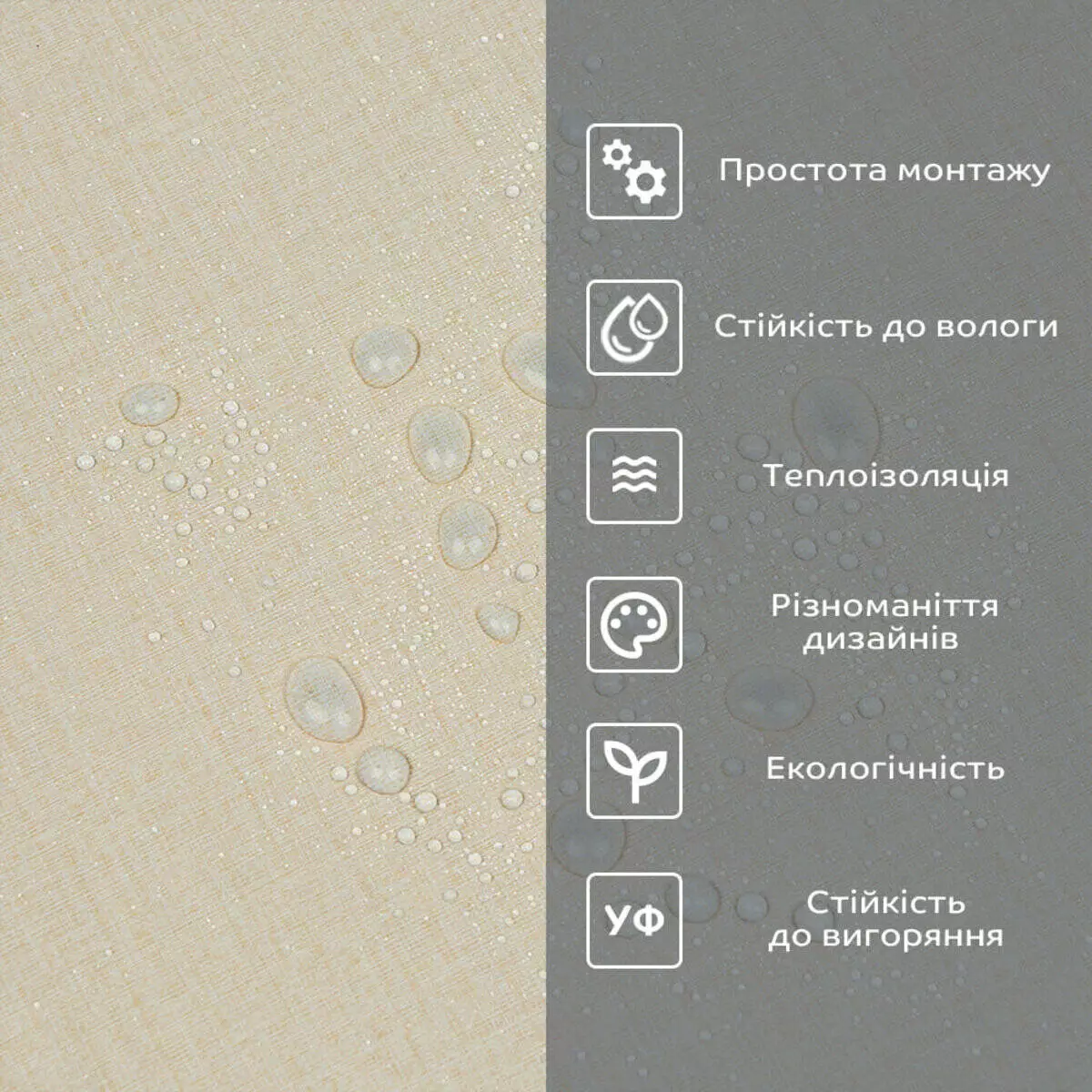 Фактура: рівна, з імітацією натуральних матеріалів. Поверхня глянсова або матова.