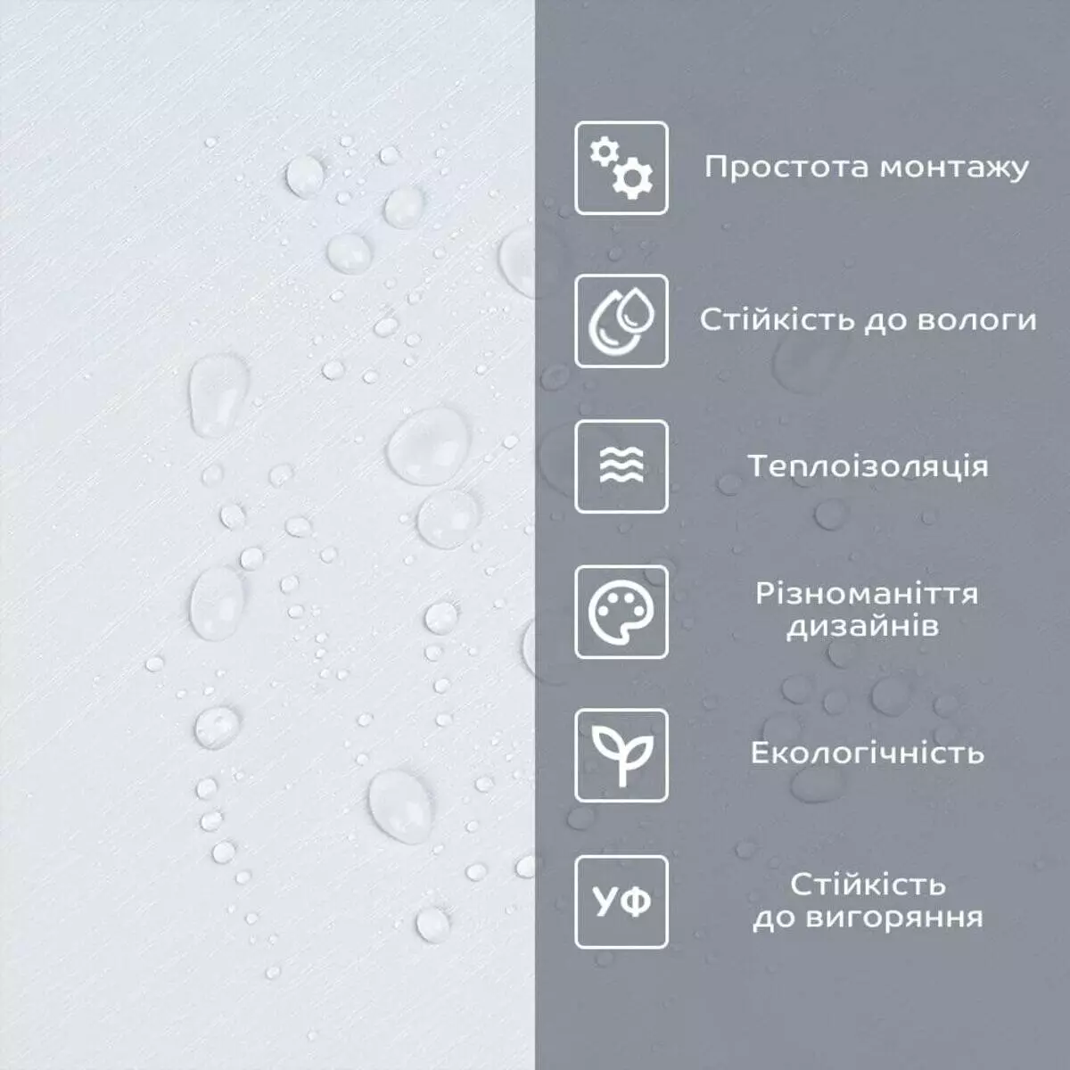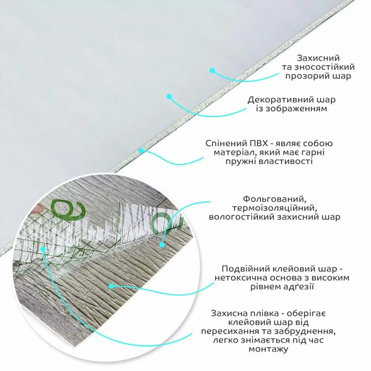 Фактура: рівна, з імітацією натуральних матеріалів. Поверхня глянсова або матова.