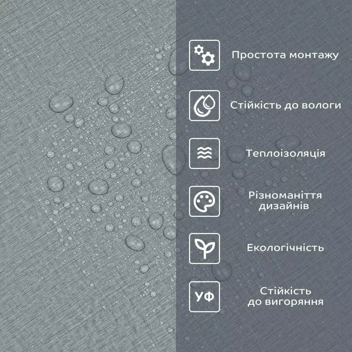 Фактура: рівна, з імітацією натуральних матеріалів. Поверхня глянсова або матова.
