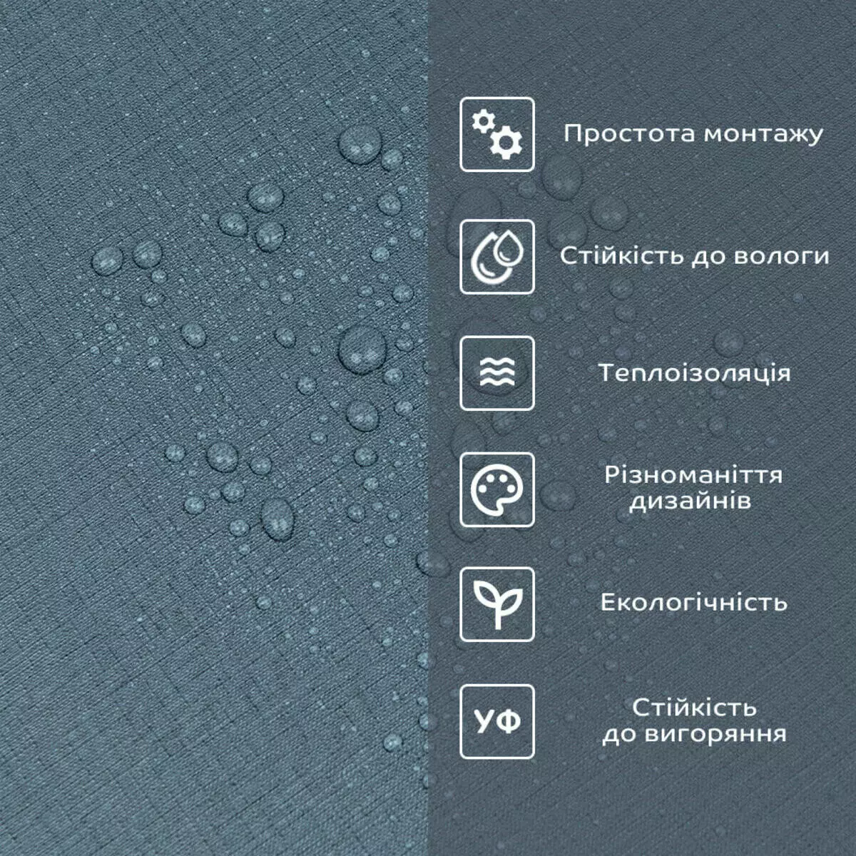 Фактура: рівна, з імітацією натуральних матеріалів. Поверхня глянсова або матова.