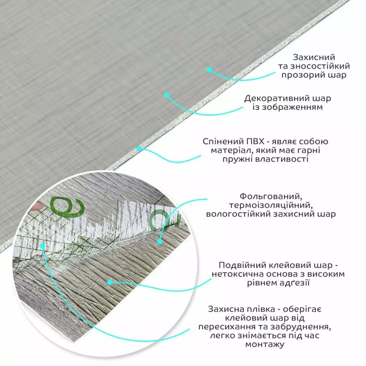 Фактура: рівна, з імітацією натуральних матеріалів. Поверхня глянсова або матова.
