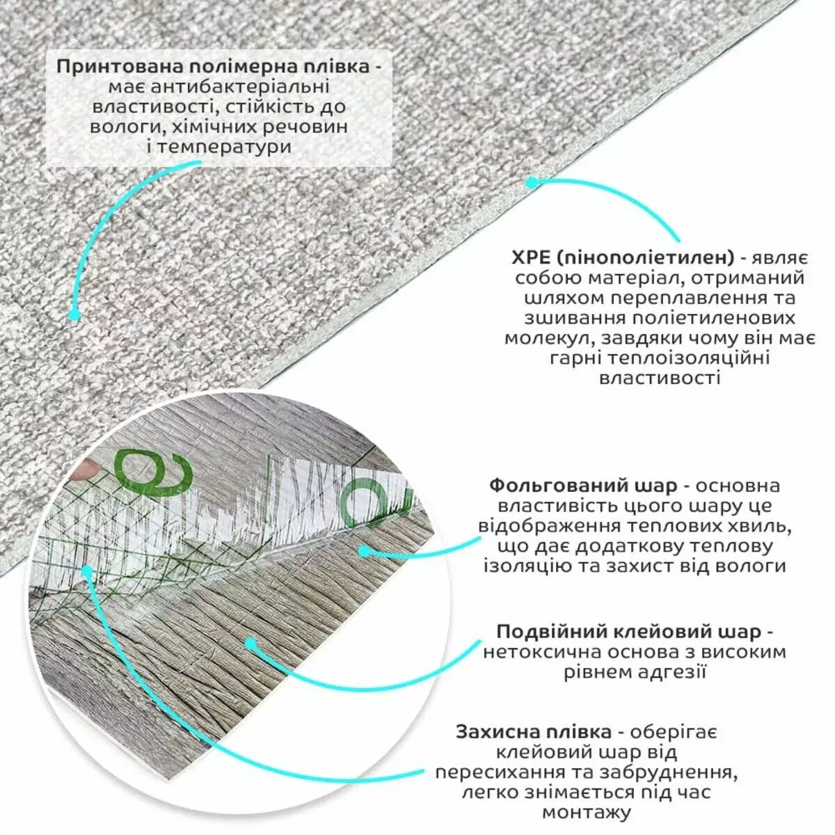 - Теплоізоляція: Спінений ХРЕ і фольгований шар забезпечують хорошу теплоізоляцію, що допомагає підтримувати комфортну температуру в приміщенні.