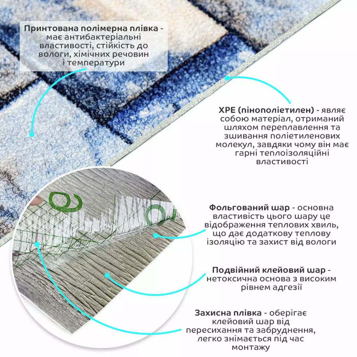 - Захисна плівка: оберігає клейовий шар від пересихання та забруднення, легко знімається під час монтажу.