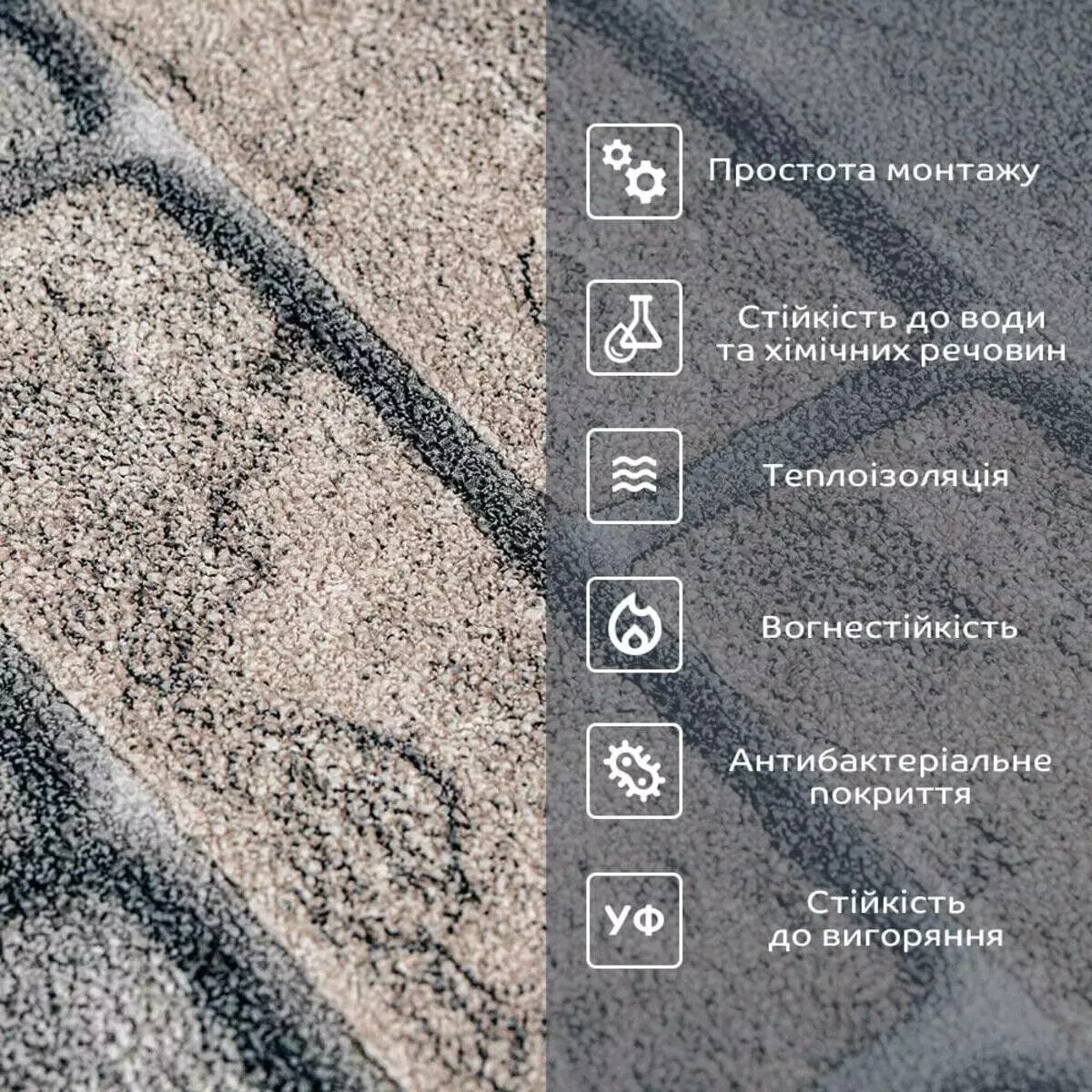 - Захисна плівка: оберігає клейовий шар від пересихання та забруднення, легко знімається під час монтажу.
