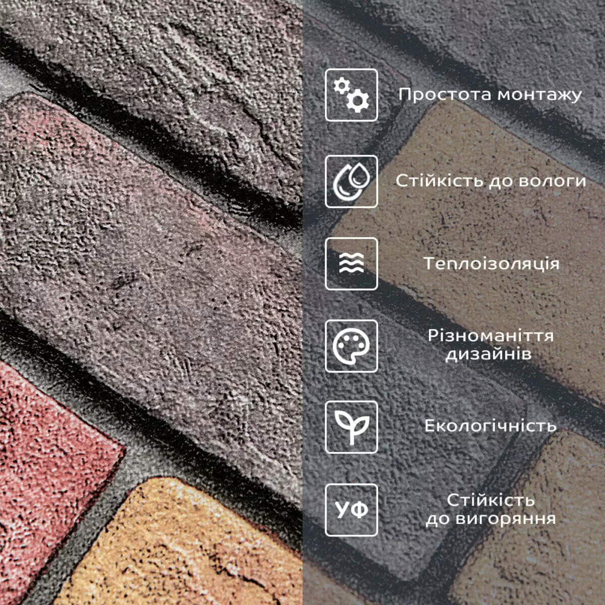- Захисна плівка: оберігає клейовий шар від пересихання та забруднення, легко знімається під час монтажу.