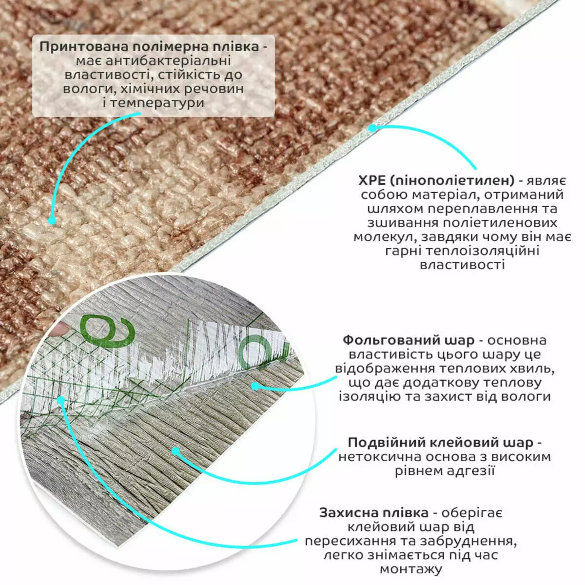 - Захисна плівка: оберігає клейовий шар від пересихання та забруднення, легко знімається під час монтажу.