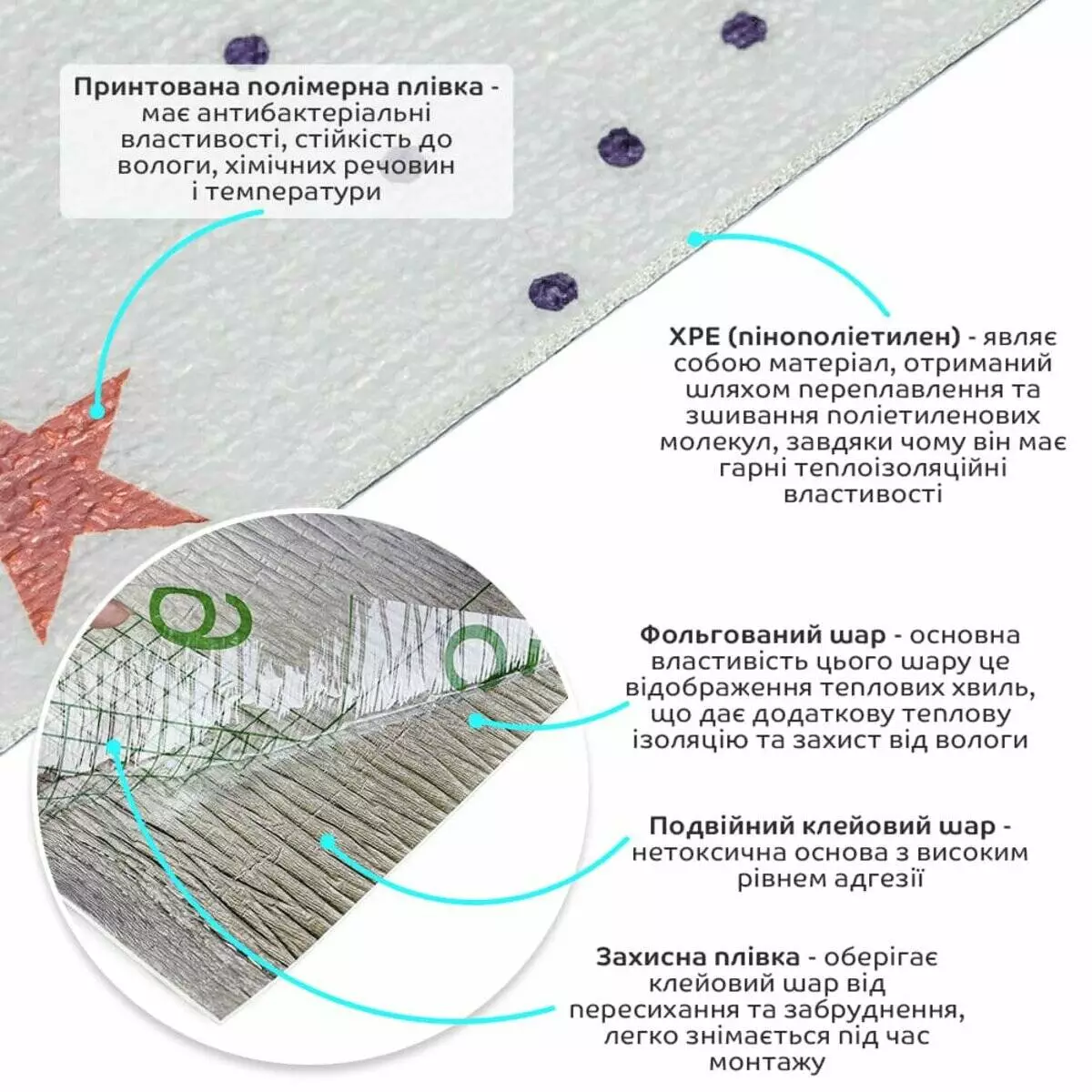 - Теплоізоляція: Спінений ХРЕ і фольгований шар забезпечують хорошу теплоізоляцію, що допомагає підтримувати комфортну температуру в приміщенні.