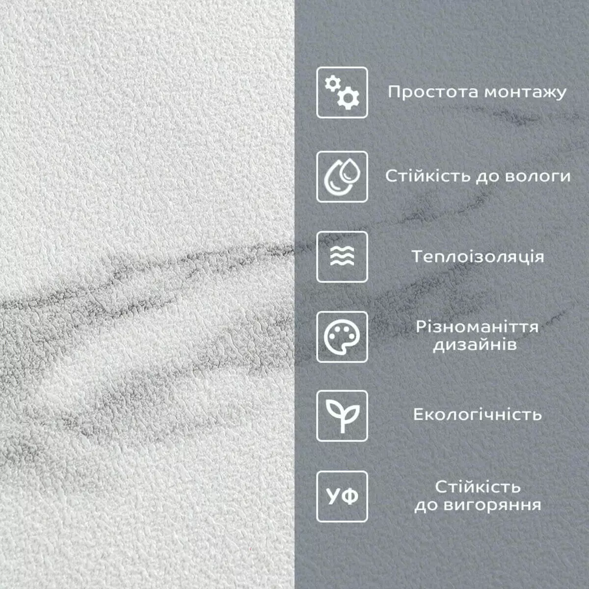 - Захисна плівка: оберігає клейовий шар від пересихання та забруднення, легко знімається під час монтажу.