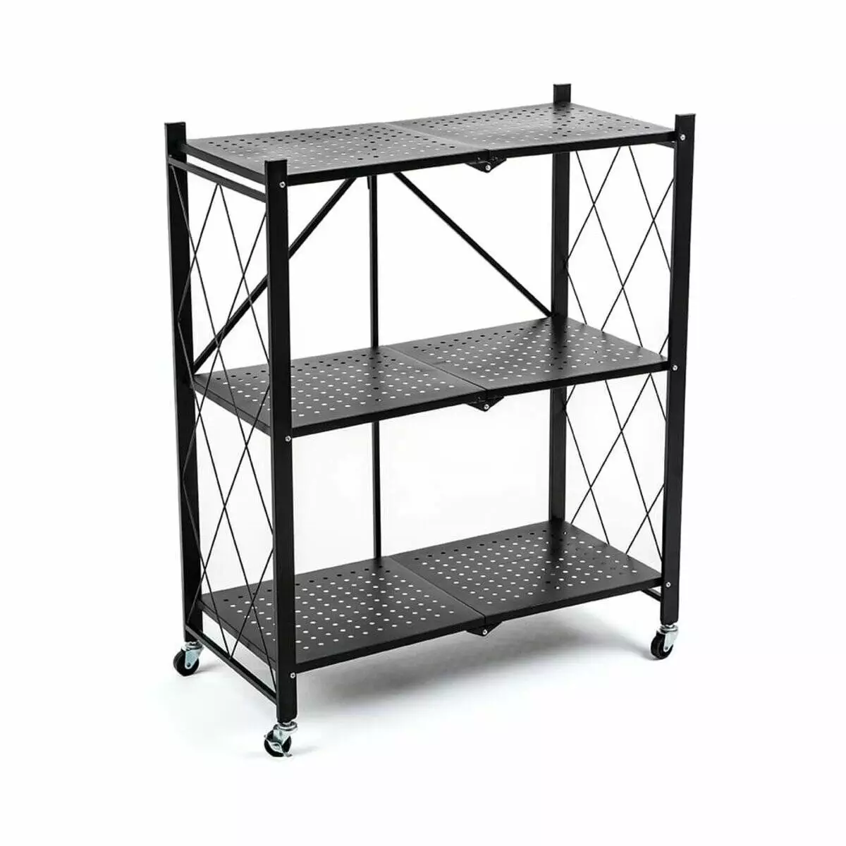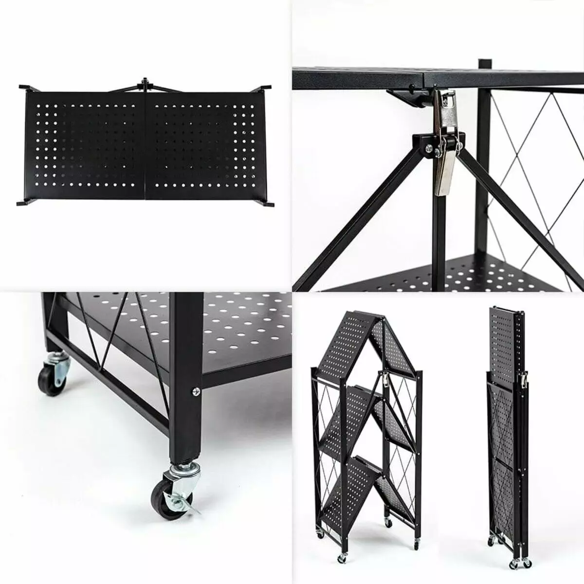 Стелаж мобільний триярусний універсальний розкладний з нержавіючої сталі 89х72х34см Чорний SW-00002097