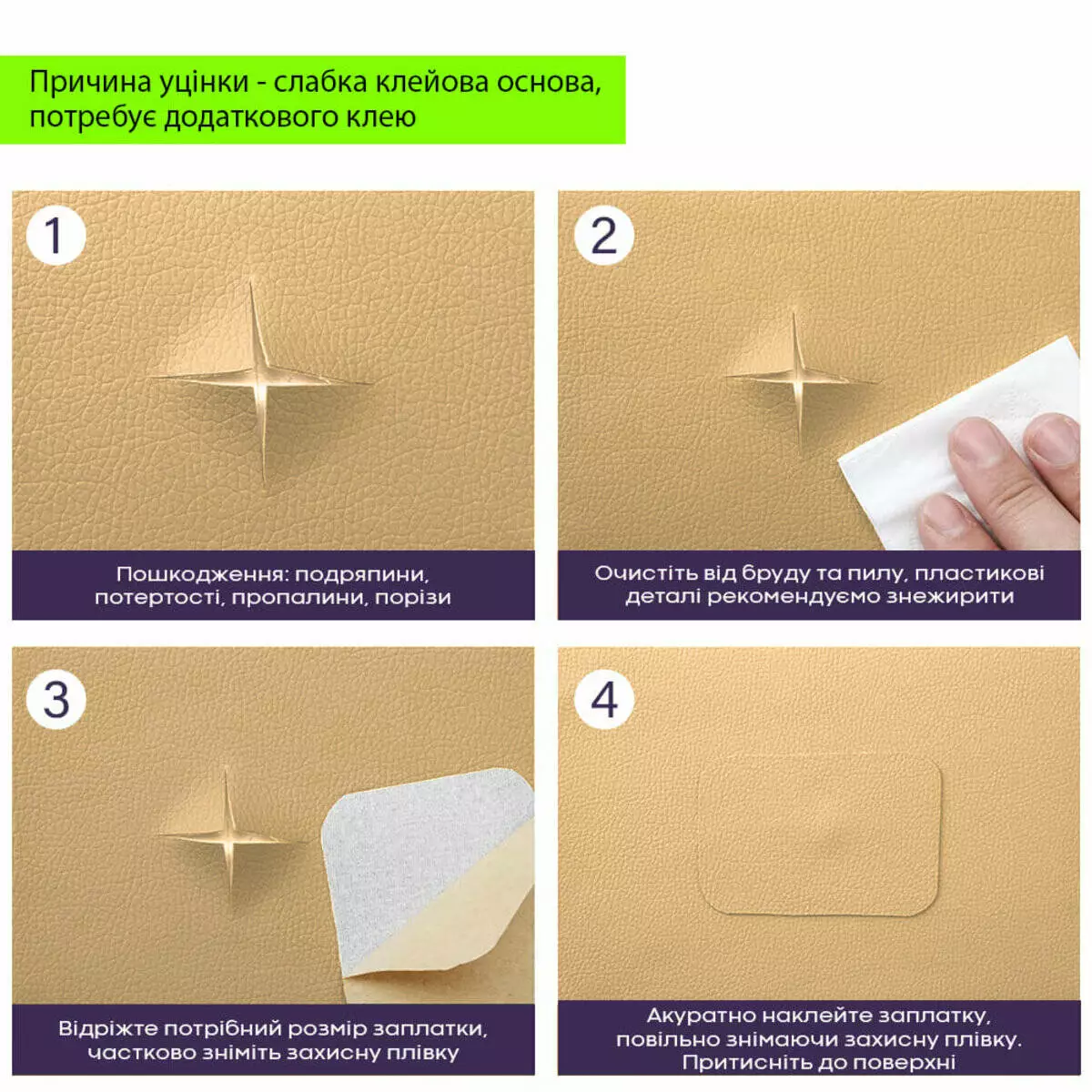 Самоклейна екошкіра у рулоні легко та швидко допоможе усунути усі проблеми з виробами із натуральної шкіри або її аналогів. Більше не треба турбуватися про гострі пазурі домашніх улюбленців чи сліди від попелу цигарок, швидко та самостійно можна відреставрувати меблі чи салон автівки. Матеріал може використовуватися як у вигляді фігурних латок, так і довгими смугами для усунення досить великої площі дефектів. Матеріал міцний, зносостійкий, вологостійкий, стійкий до забруднень, що робить його незамінним та бюджетним помічником при реставрації предметів щоденного вжитку та збільшує термін їх використання.