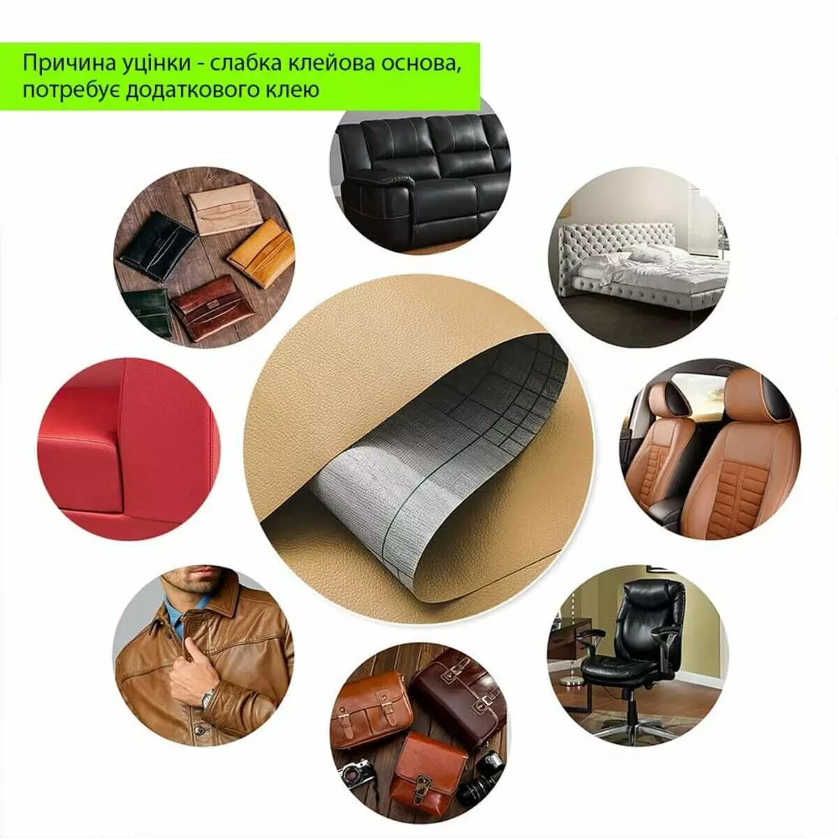 - Екошкіра має більшу міцність та довговічність порівняно із натуральною шкірою, що додає переваг її використанню для ремонту та реставрації речей щоденного вжитку;