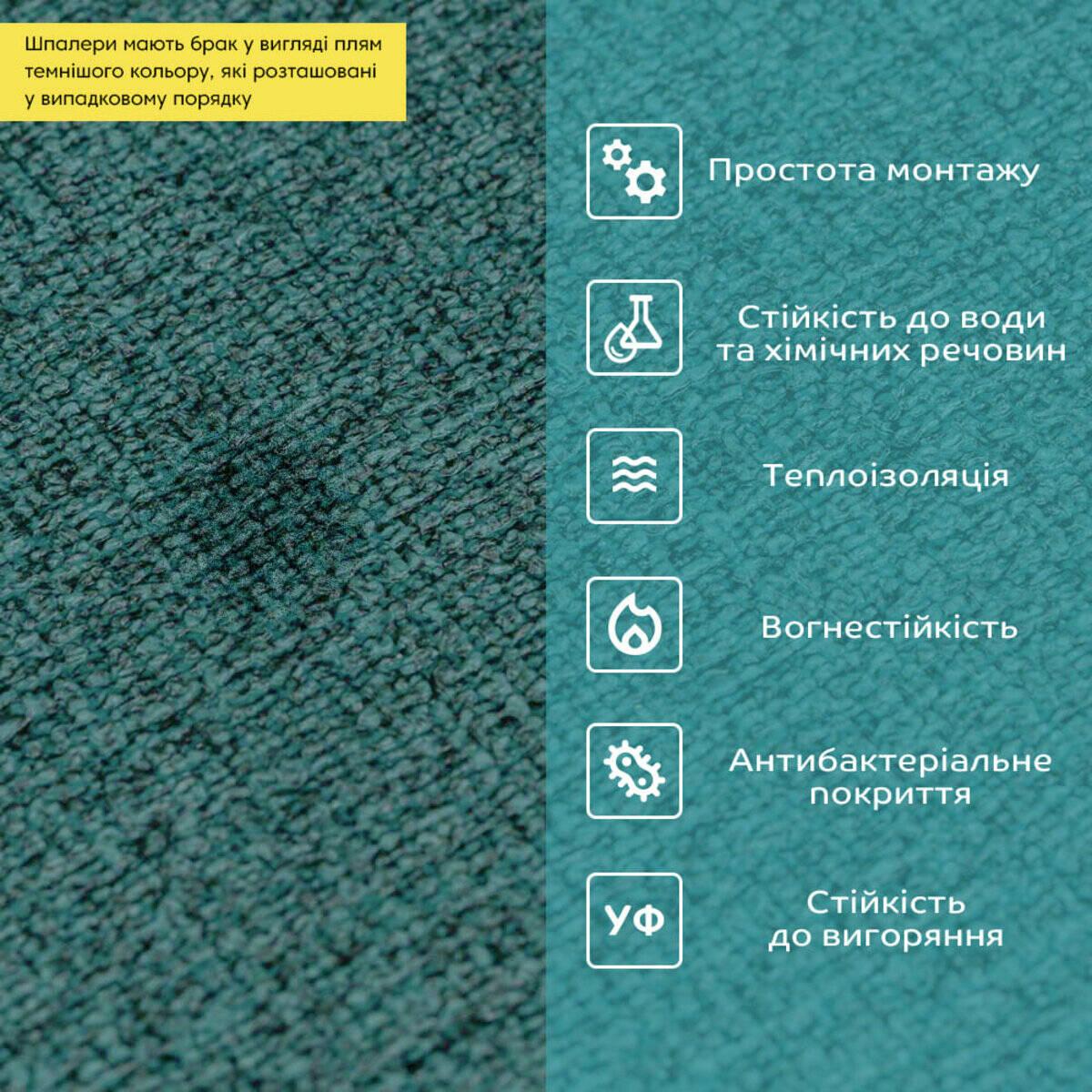 - Прінтована полімерна плівка - має антибактеріальні властивості, стійкість до вологи, хімічних речовин і температури. -захист допомагає запобігти вигоранню, зберігаючи колір насиченим, за рахунок чого шпалери довго зберігають свій первісний естетичний вигляд