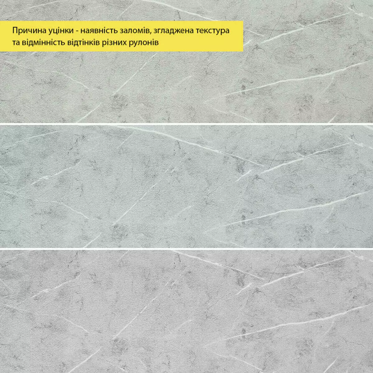 - Кожен рулон перед поклеюванням слід перевірити на відповідність кольору (відтінку). Не знімаючи захисну плівку з клейового шару, додайте новий рулон до вже наклеєних шпалер, якщо відтінок відрізняється, слід перевернути рулон.