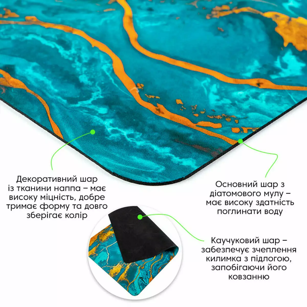 • Широке використання: діатомітові килимки підходять для використання в різних приміщеннях, включаючи ванні кімнати, кухні, вхідні двері, пральні та місця, де є домашні тварини.
