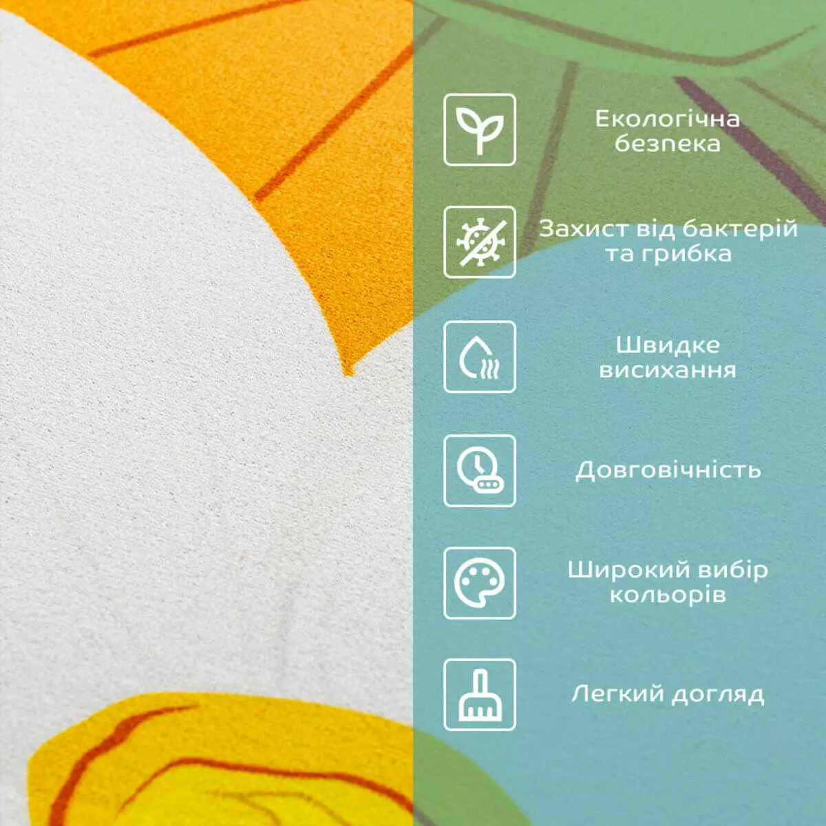 • Безпека для здоров'я: килимки не виділяють токсичних речовин і є безпечними для використання в приміщеннях, де є діти та домашні тварини.